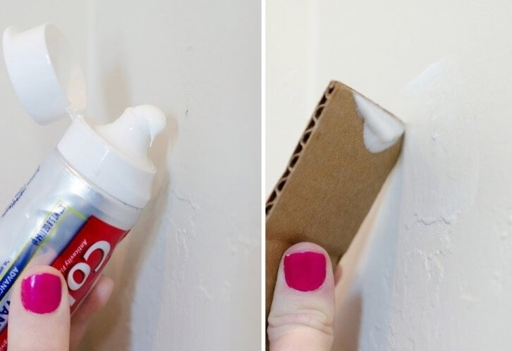You can easily use some toothpaste to fill those holes. It’s important to ensure the toothpaste is white so it matches your white wall color, otherwise, it won’t blend in. You can also use this trick before you leave a place to help ensure you don’t forfeit your security deposit.