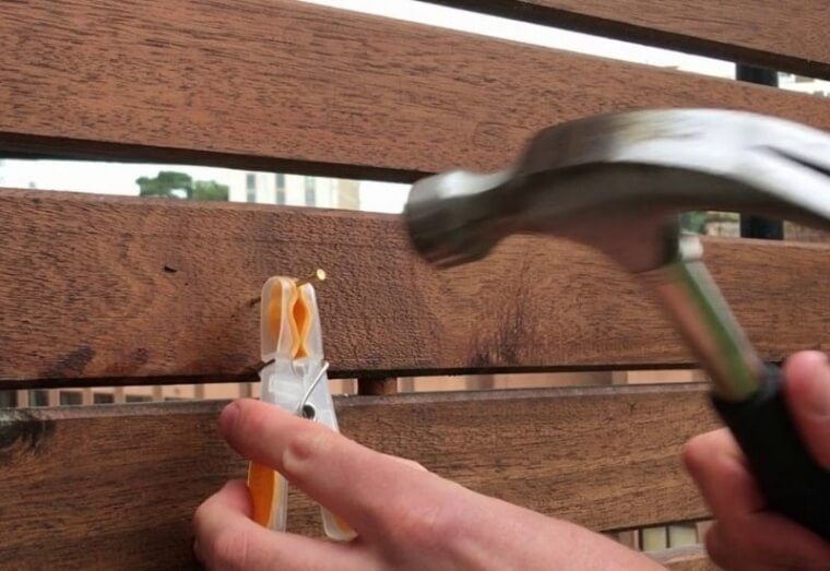 For this tip, you can use bobby pins, clothespins, or similar items. For instance, if you choose a clothespin, you can hold the nail between the pin and start hammering. This will protect your fingers and ensure you stay safe during the nailing and hammering process.