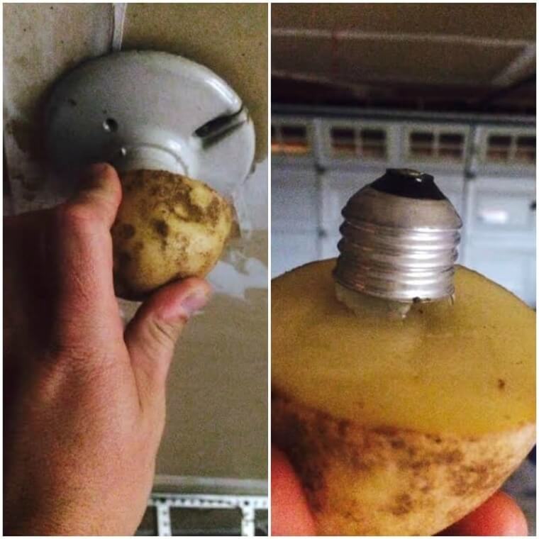 Cut a potato in half and insert the soft side into the broken light bulb. Turn the potato counter-clockwise to remove the damaged part quickly. Potatoes have uses beyond just being food.