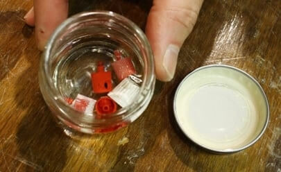 Apply clear nail polish to the bottom of these metallic containers. This will prevent rust from forming, eliminating rust marks on other surfaces.