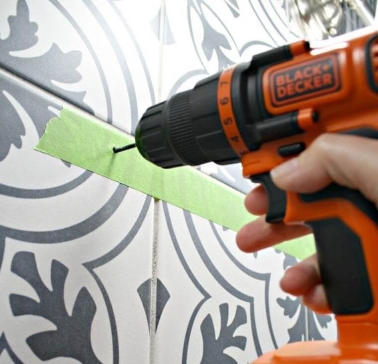 To ensure a slip-resistant drilling experience, you’ll need some tape. First, apply masking tape over the tile, and then drill. This approach will help keep the drill steady and prevent it from slipping out of your hands during use.