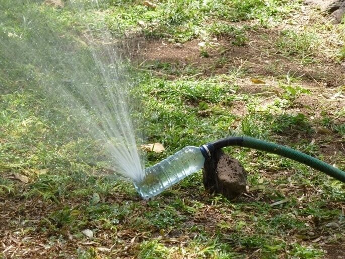 Take a plastic bottle—the larger, the better—and ensure it is thoroughly clean. You can wash out any liquids by placing it under running tap water. Then, take a tool with a sharp point, like a compass or screwdriver, and make about 12 to 14 holes in the bottom of the bottle. After that, connect the bottle’s opening to your hose and use electrical tape to fasten it securely. When you turn the water on, the bottle will fill up, and the water pressure will cause the holes to function like a sprinkler.