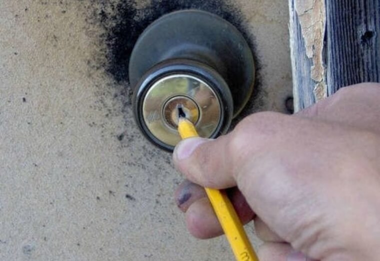 A lock that is stuck generally needs lubrication to get the key working again. However, this should be done with graphite instead of any liquid. At times, finding graphite powder can be difficult when you’re in a hurry. In that case, you can easily use a graphite pencil to lubricate the lock. We advise against inserting the pencil directly into the lock because the tip might break and worsen the problem. Instead, rub the pencil on your key and then insert the key into the lock. Do this a few times and then unlock the stuck lock.