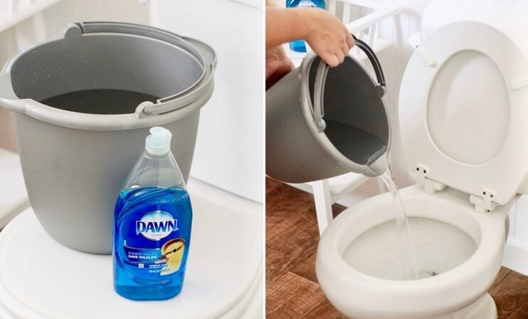 Begin by measuring out a gallon of water and placing it over the stove to heat. Before it reaches a boil, add your liquid soap. Once the water is significantly hot, remove it from the heat and carefully pour it into your clogged toilet. Ensure the water is taken off the heat before it boils. Wait about 10 to 15 minutes for the hot water and soap mixture to soften the clog in your toilet. Finally, flush to make sure the pipe is fully clear.